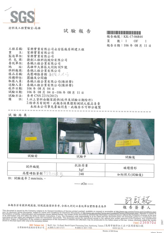 臺(tái)灣SGS拉拔測(cè)試