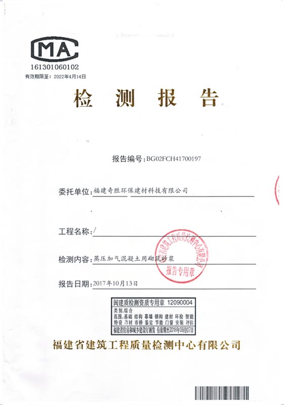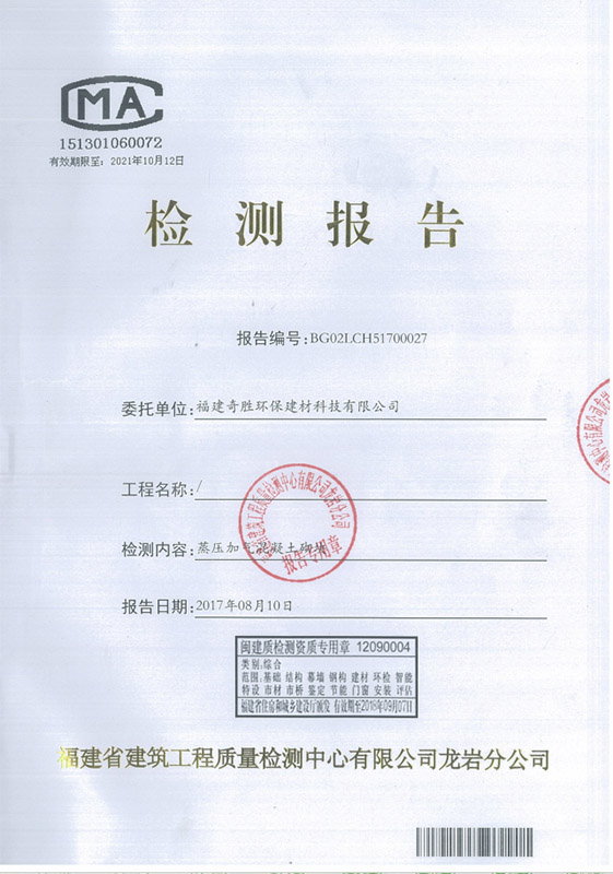 新型高精加氣砌塊(凹凸型)檢測(cè)報(bào)告